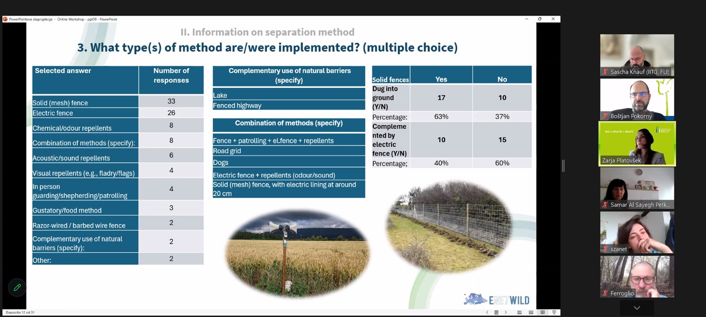In the framework of the international ENETWILD project, members of the FVO project team have been involved in the preparation and running of the Online Workshop: Questionnaire about experiences in effectiveness of methods for controlling wild boar movement, which aims, among other things, to identify which separation measures are most effective in limiting the movement of wild boar and thus preventing the spread of African swine fever in Europe. The workshop presented the findings published so far (in scientific journals/articles) on the effectiveness of each method, as well as the practical experience gained by surveying a wide range of stakeholders from 15 European countries.