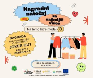 Obvestila za študente Plačano strokovno usposabljanje DBU v Nemčiji (prijave do 5. marca 2026) 3. marca 2026 Več » Očistimo Slovenijo digitalnih odpadkov 20. februarja 2026 Več » Nagradni natečaj za najboljši video na temo hitre mode 20. februarja 2026 Več » Strokovna ekskurzija GreenGate2 12. februarja 2026 Več » Vabilo na četrti DOPPS-ov študentski tabor 6. februarja 2026 Več » Predavanje: Volk ponovno na Pohorju – miti in resnice 22. januarja 2026 Več » « Nazaj Page1 Page2 Page3 … Page27 Naprej »
