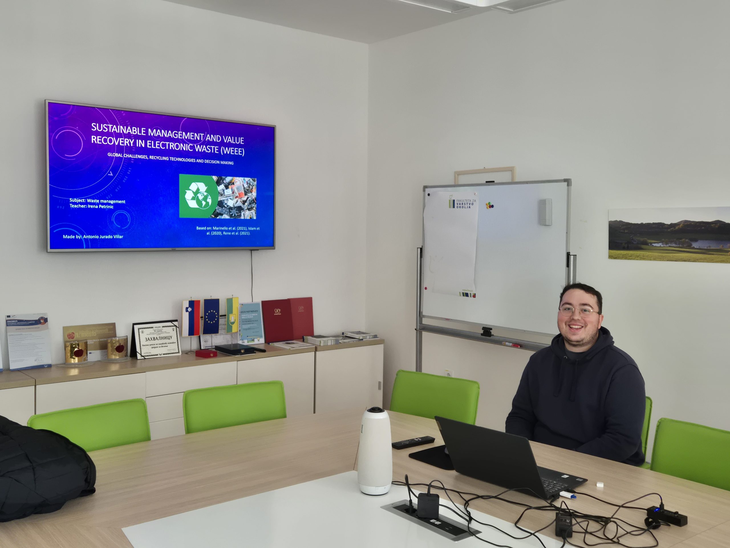 Konec prejšnjega tedna se je na Fakulteti za varstvo okolja zaključilo semestrsko študijsko obdobje Erasmus+ študenta Antonia Villarja iz partnerske Univerze Jaén iz istoimenskega mesta v avtonomni pokrajini Andaluzija, Španija. Antonio je od oktobra dalje redno obiskoval predavanja ter se aktivno vključeval v študijsko dogajanje na fakulteti.